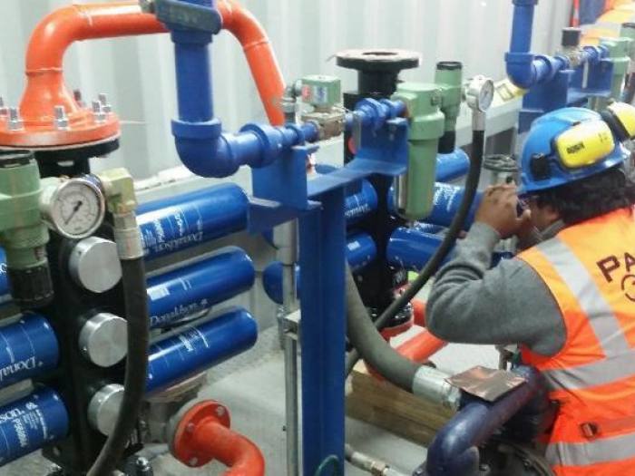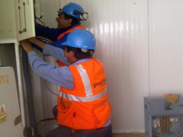 El tendido de línea de fuerza de sala eléctrica hacia los motores de los diferentes equipos en campo.